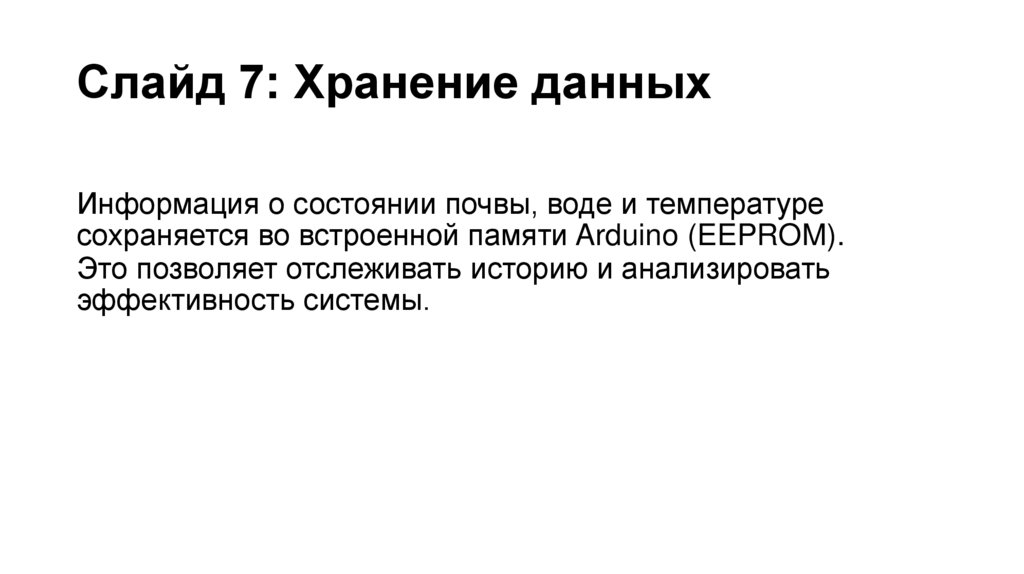 Слайд 7: Хранение данныхИнформация о состоянии почвы, воде и температуре