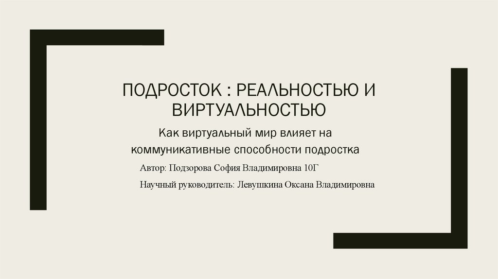 ПОДРОСТОК : РЕАЛЬНОСТЬЮ ИВИРТУАЛЬНОСТЬЮ