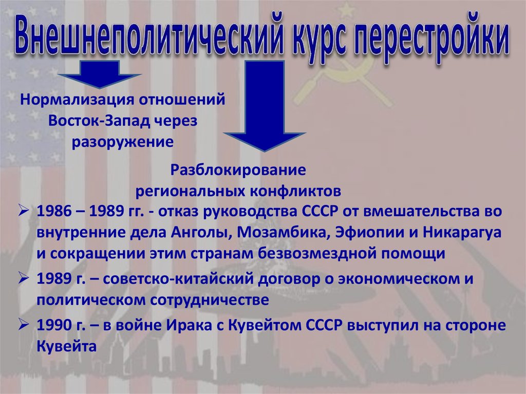 1986 – 1989 гг. - отказ руководства СССР от вмешательства во