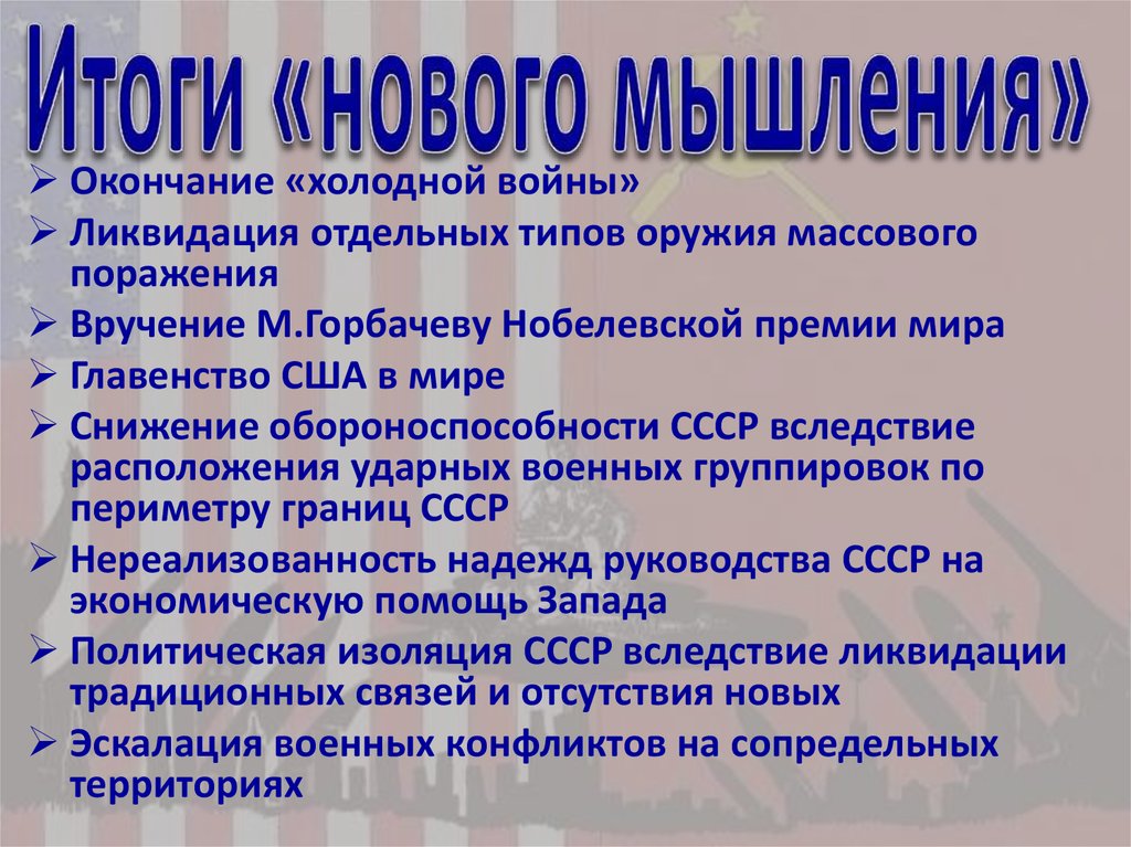 Окончание «холодной войны»Ликвидация отдельных типов оружия массового