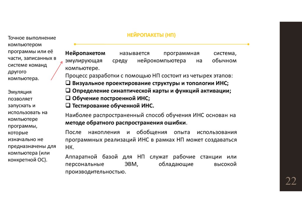 программных реализаций ИНС в рамках НП может создаваться
