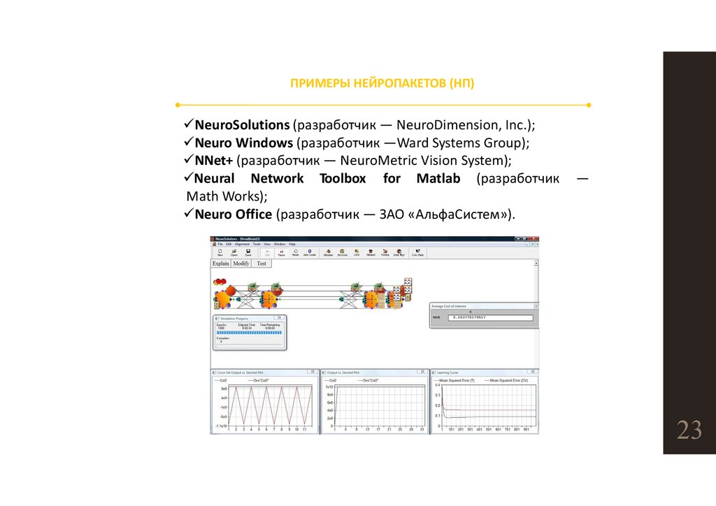 ПРИМЕРЫ НЕЙРОПАКЕТОВ (НП)NeuroSolutions (разработчик — NeuroDimension, Inc.);