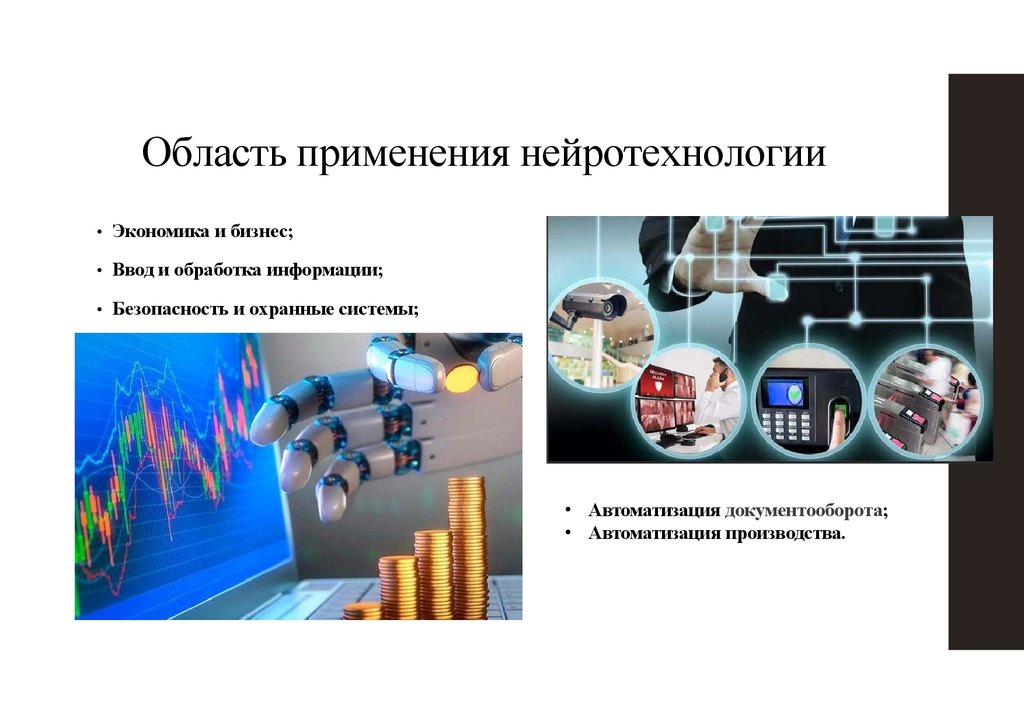 Область применения нейротехнологии• Экономика и бизнес;
