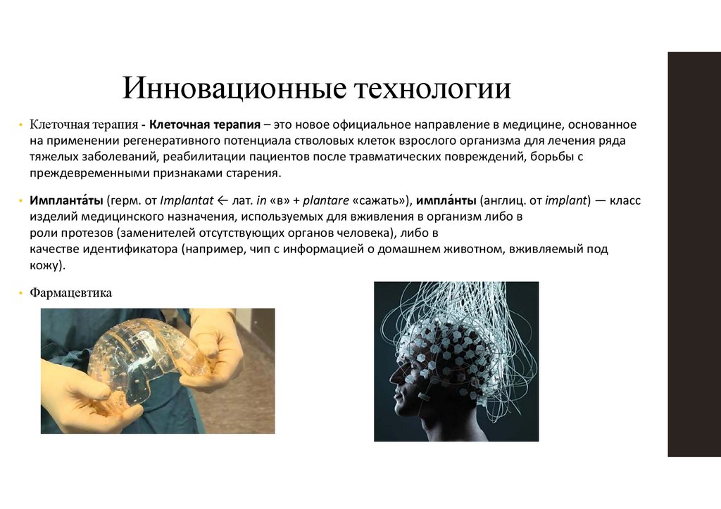 Инновационные технологии• Клеточная терапия - Клеточная терапия – это новое официальное направление в медицине, основанное