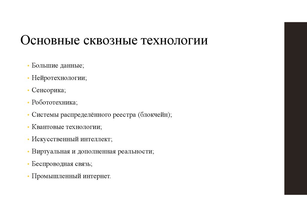Основные сквозные технологии• Большие данные;