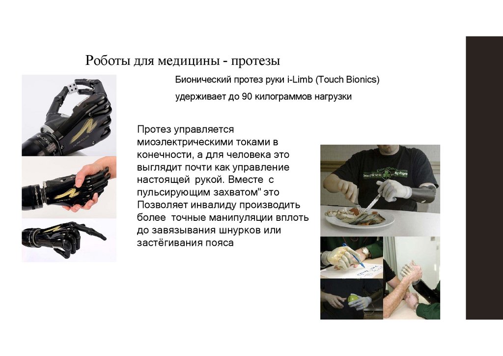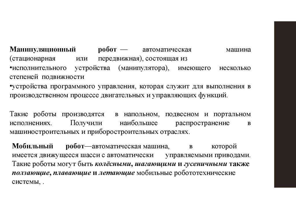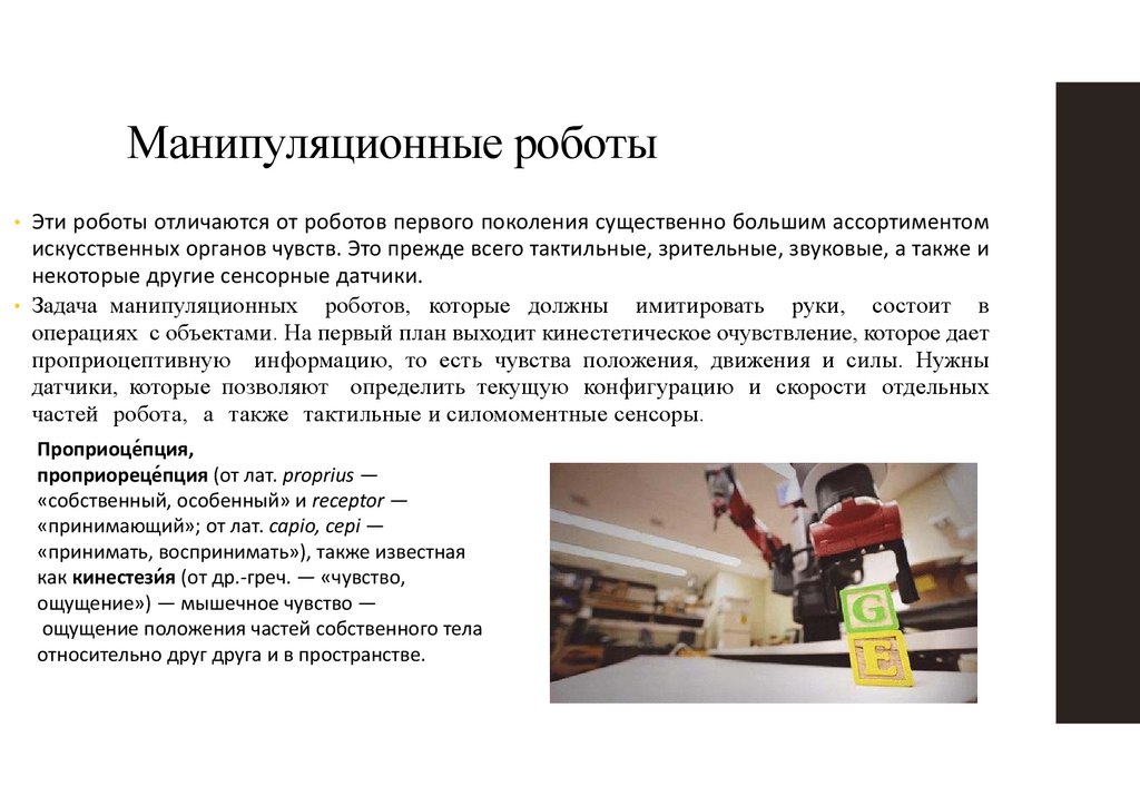 • Задача манипуляционных роботов, которые должны имитировать руки, состоит в