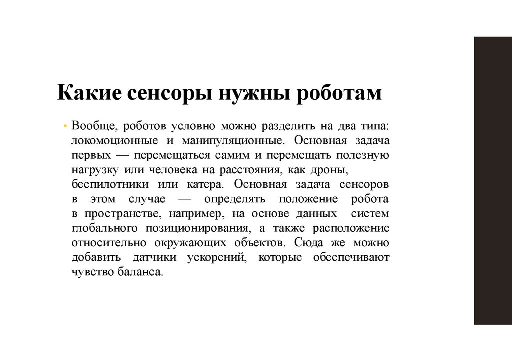 Какие сенсоры нужны роботам• Вообще, роботов условно можно разделить на два типа: