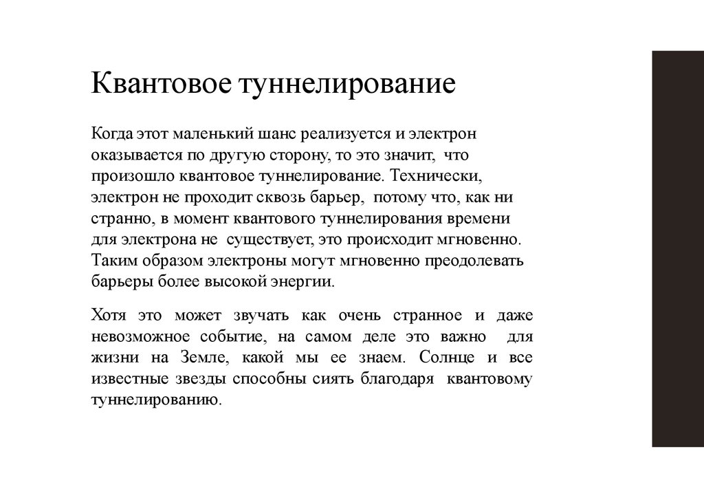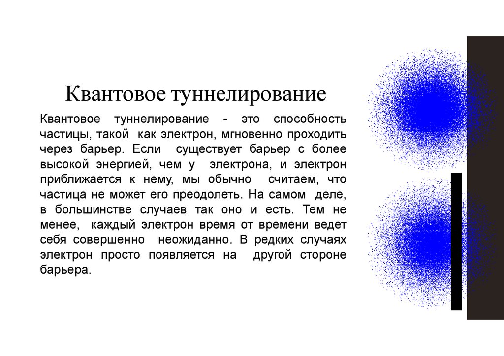 Квантовое туннелированиеКогда этот маленький шанс реализуется и электрон