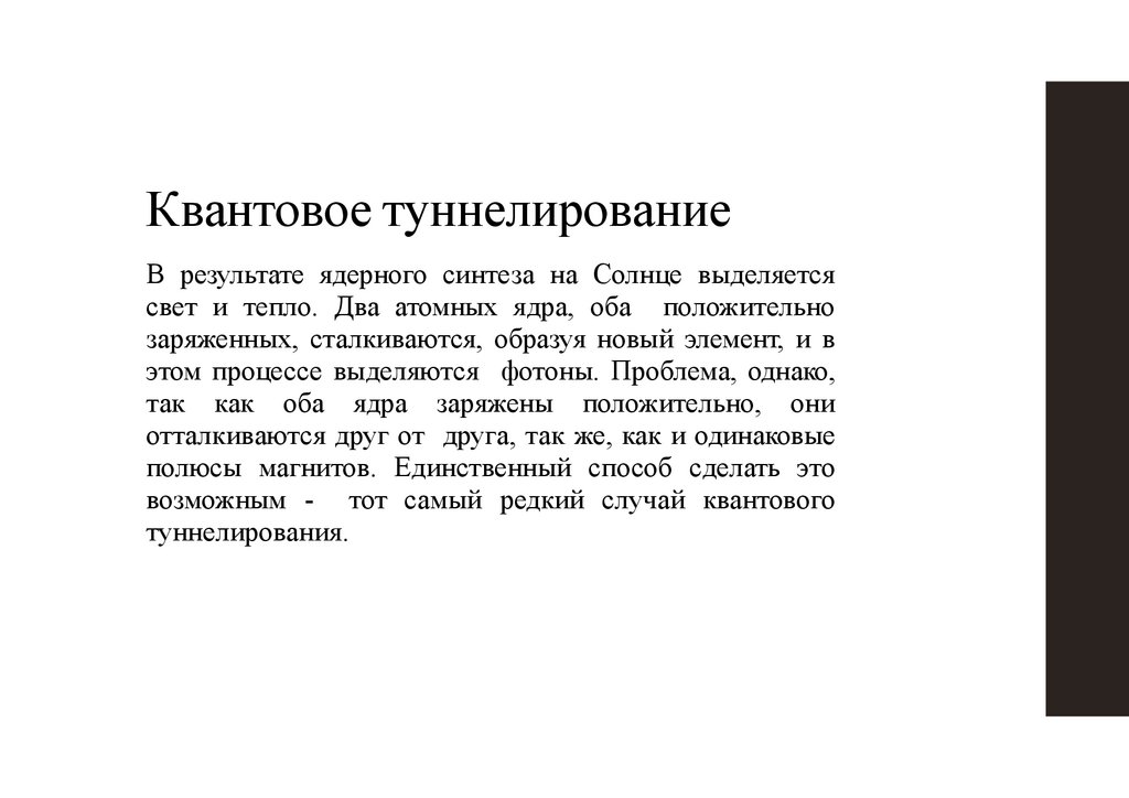 Квантовое туннелированиеВ результате ядерного синтеза на Солнце выделяется
