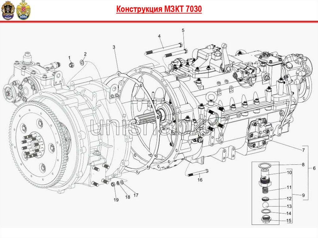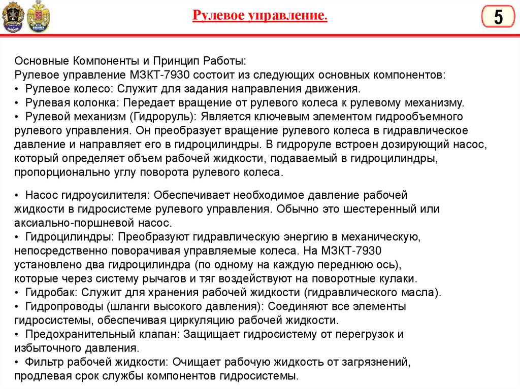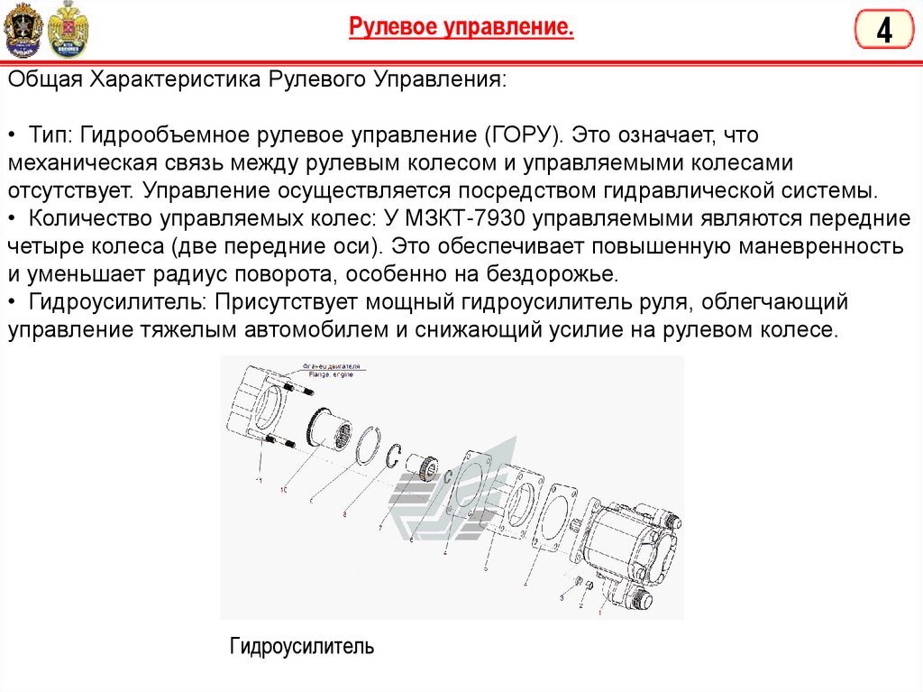 Рулевое управление МЗКТ-7930 состоит из следующих основных компонентов: