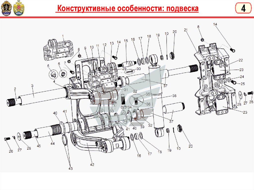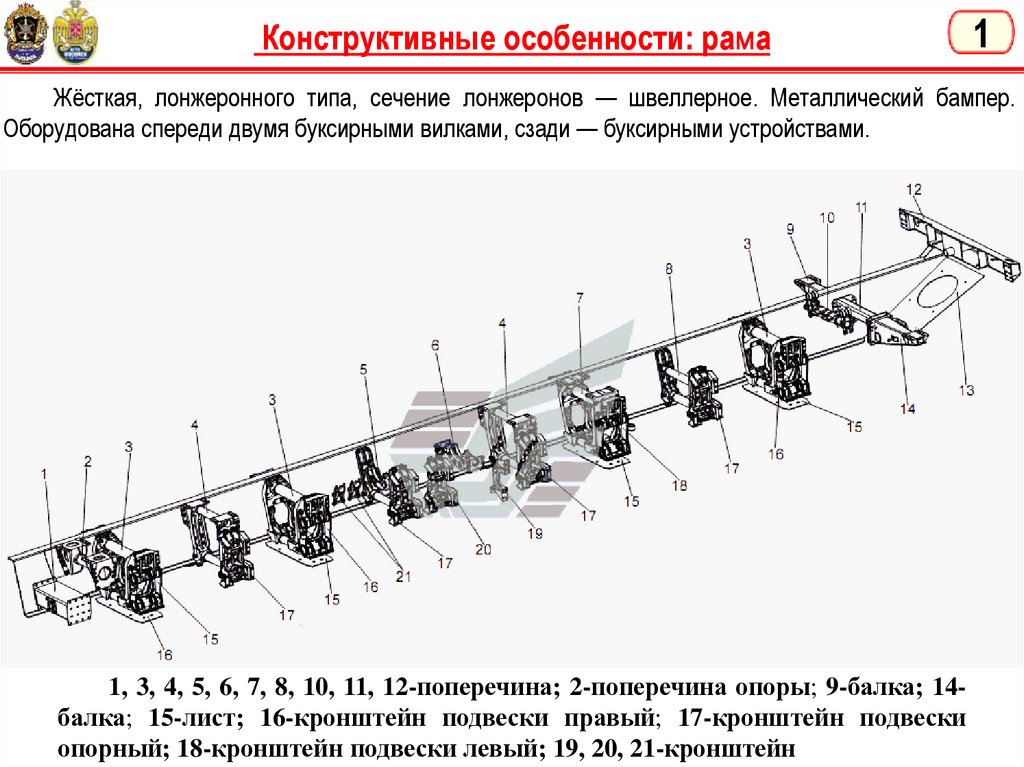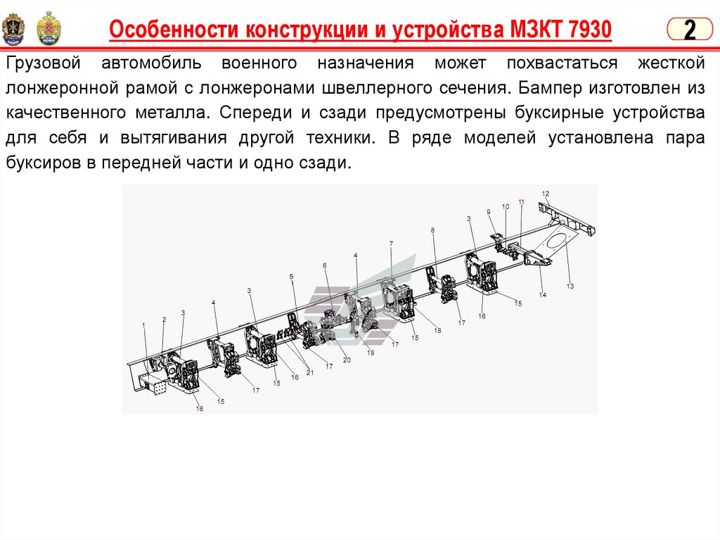 10. Конструктивные особенности ходовой части шасси МЗКТ-7930. Рама. Элементы подвески.