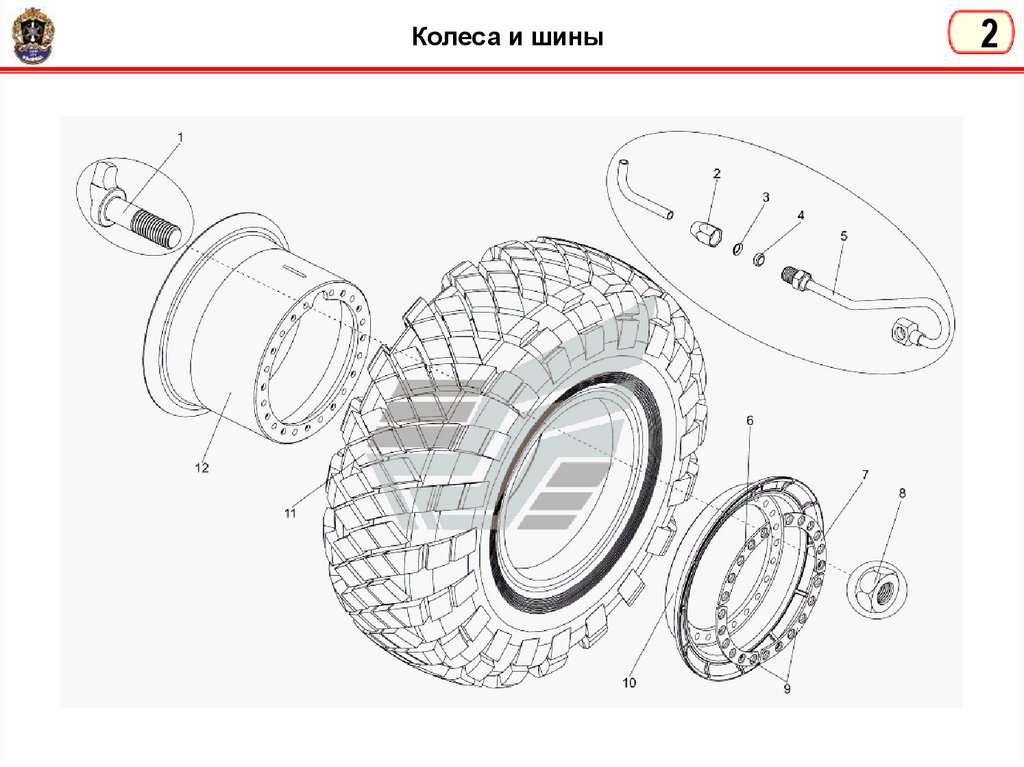 11. Устройство ходовой части шасси МЗКТ-7930 Колёса и шины.