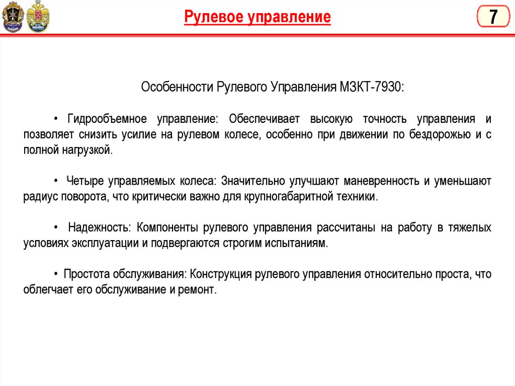 • Надежность: Компоненты рулевого управления рассчитаны на работу в тяжелых