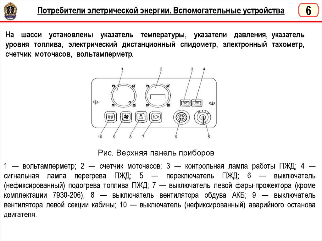 фары, сигналы, контрольно-измерительная аппаратура, вспомогательная аппаратура и