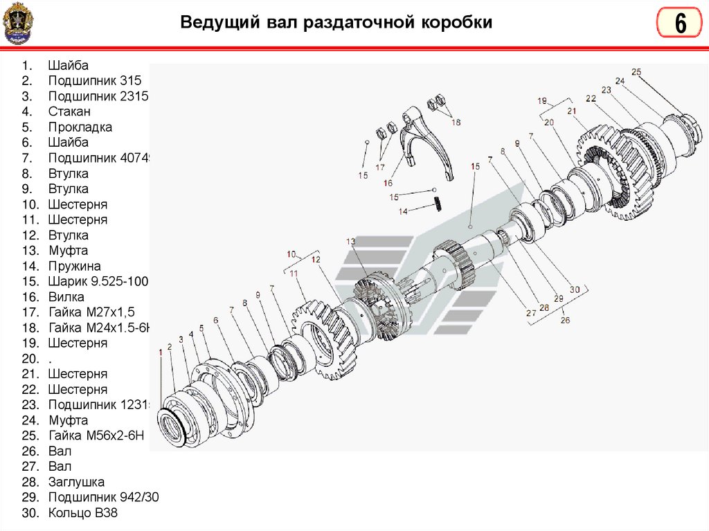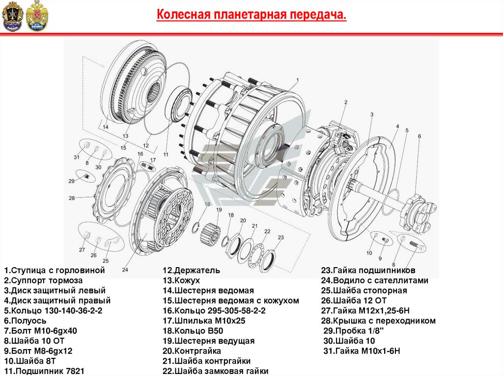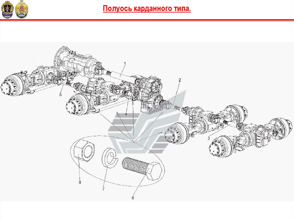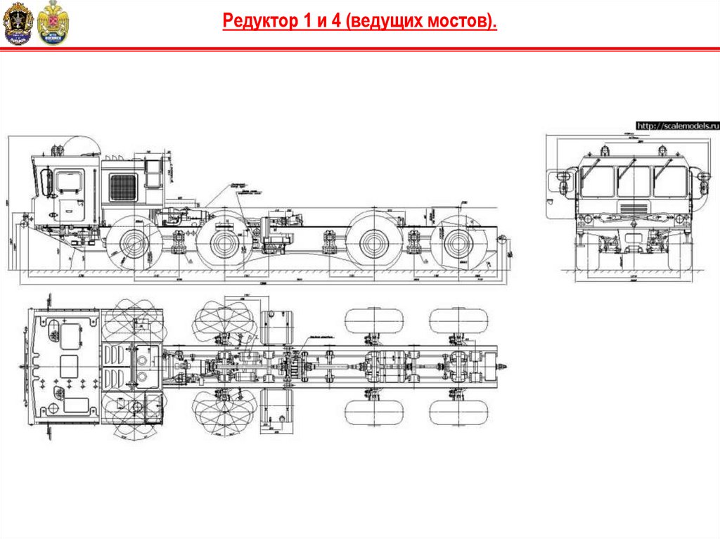 Редуктор 1 и 4 ведущих мостов, проходной центральный редуктор 2 и 3 ведущих мостов,
