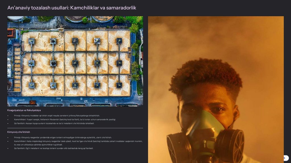 bormoqda. Zamonaviy texnologiyalar an'anaviy usullarning kamchiliklarini bartaraf etishga va tozalash jarayonini yanada ekologik toza va iqtisodiy jihatdan