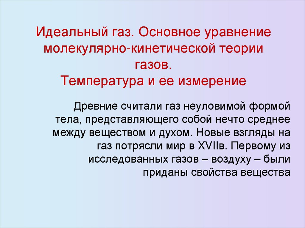 1. Идеальный газ. Основное уравнение молекулярно-кинетической теории газов. Температура и ее измерение