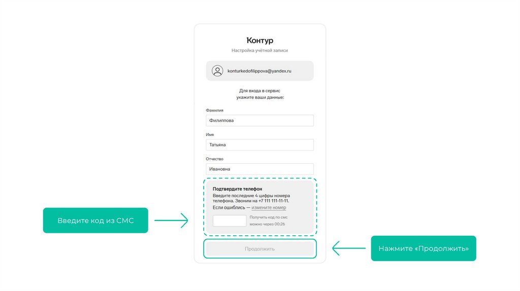 Введите код из СМСНажмите «Продолжить»