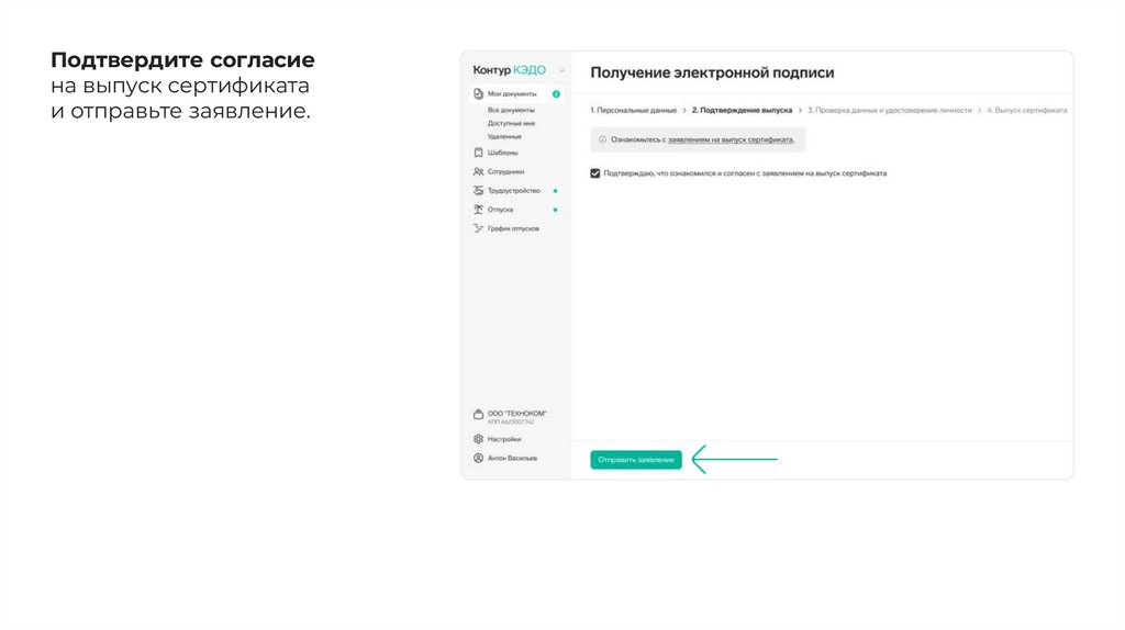 Подтвердите согласиена выпуск сертификата