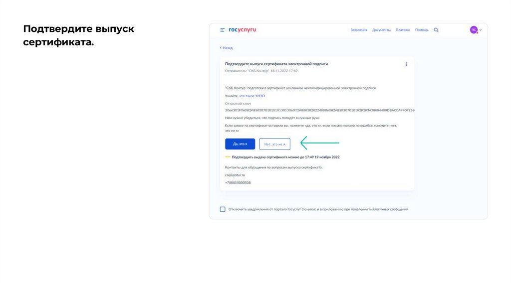 «Подтвердите выпуск сертификата