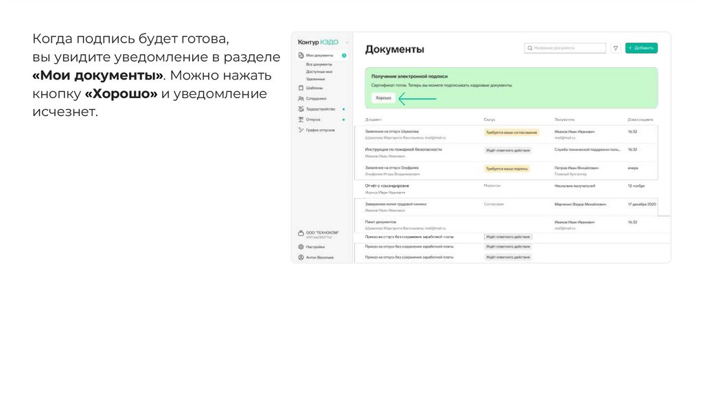 Когда подпись будет готова,вы увидите уведомление в разделе
