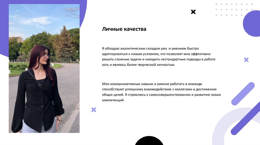 Личные качестваЯ обладаю аналитическим складом ума и умением быстро