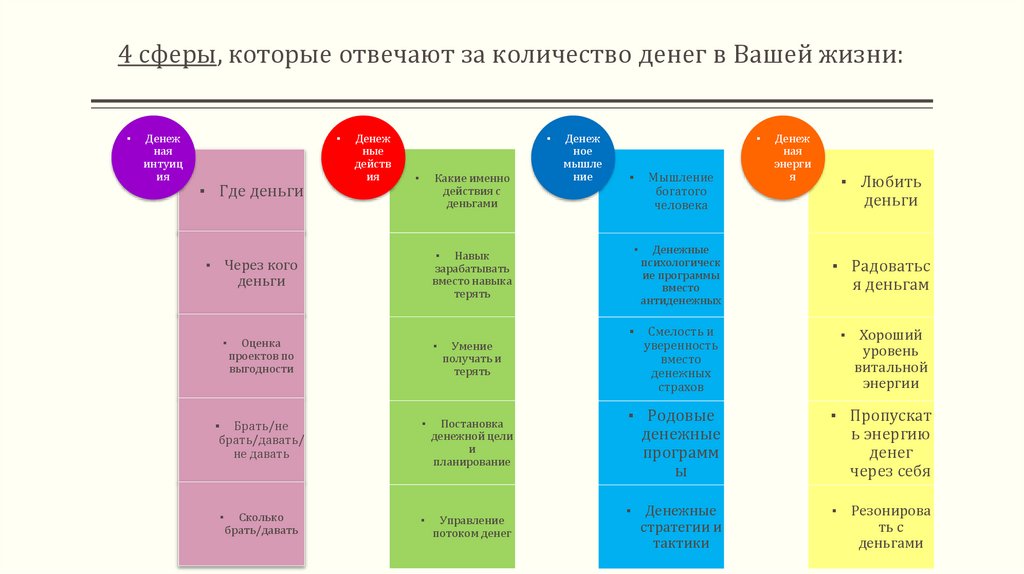 4 сферы, которые отвечают за количество денег в Вашей жизни:▪