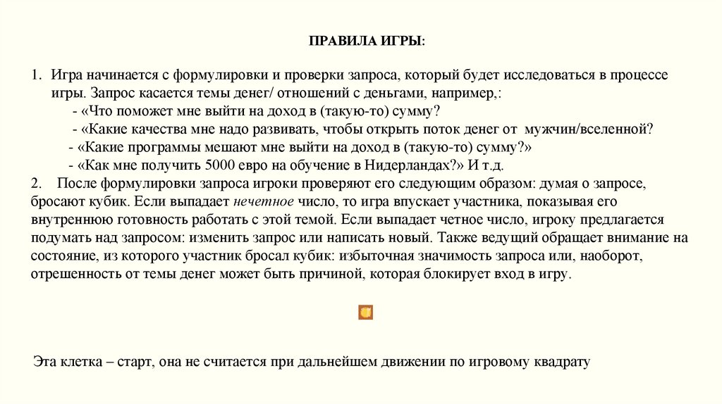 ПРАВИЛА ИГРЫ:1. Игра начинается с формулировки и проверки запроса, который будет исследоваться в процессе