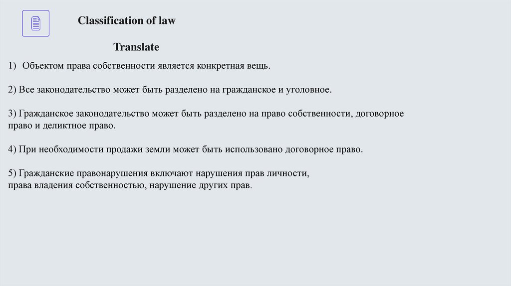 2) Все законодательство может быть разделено на гражданское и уголовное.