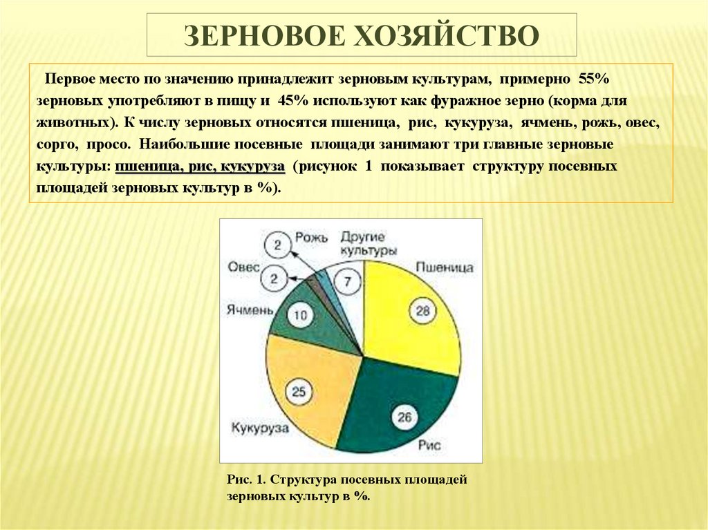 животных). К числу зерновых относятся пшеница, рис, кукуруза, ячмень, рожь, овес,