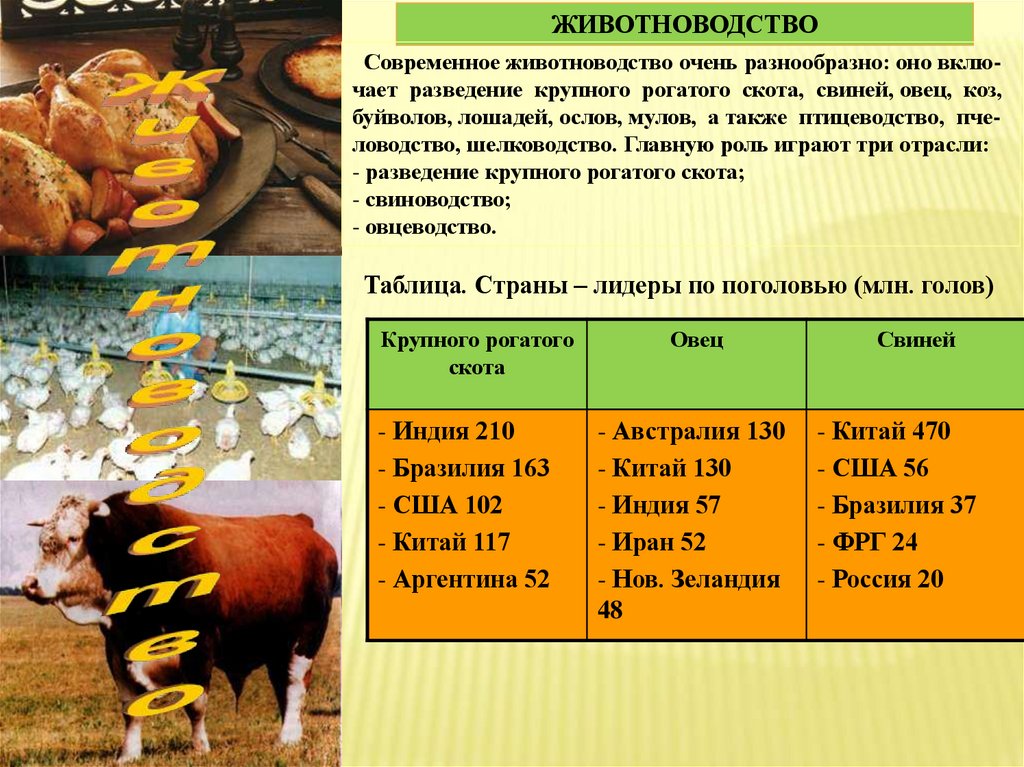 ЖИВОТНОВОДСТВОСовременное животноводство очень разнообразно: оно включает разведение крупного рогатого скота, свиней, овец, коз,
