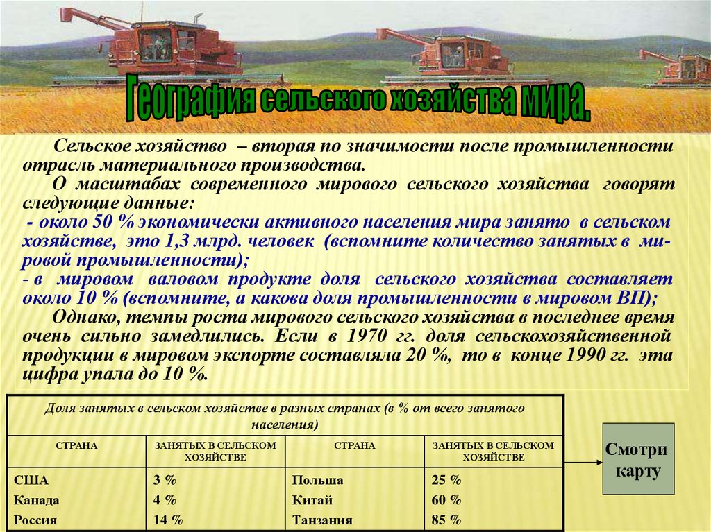 Презентация по географии 10 класс _ Сельское хозяйство мира_