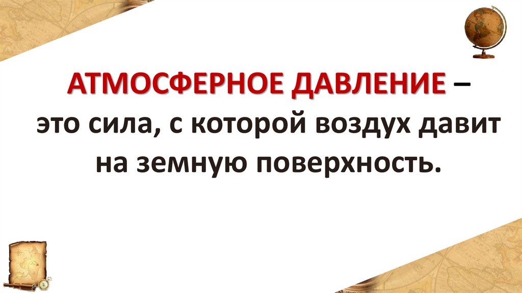 АТМОСФЕРНОЕ ДАВЛЕНИЕ –это сила, с которой воздух давит