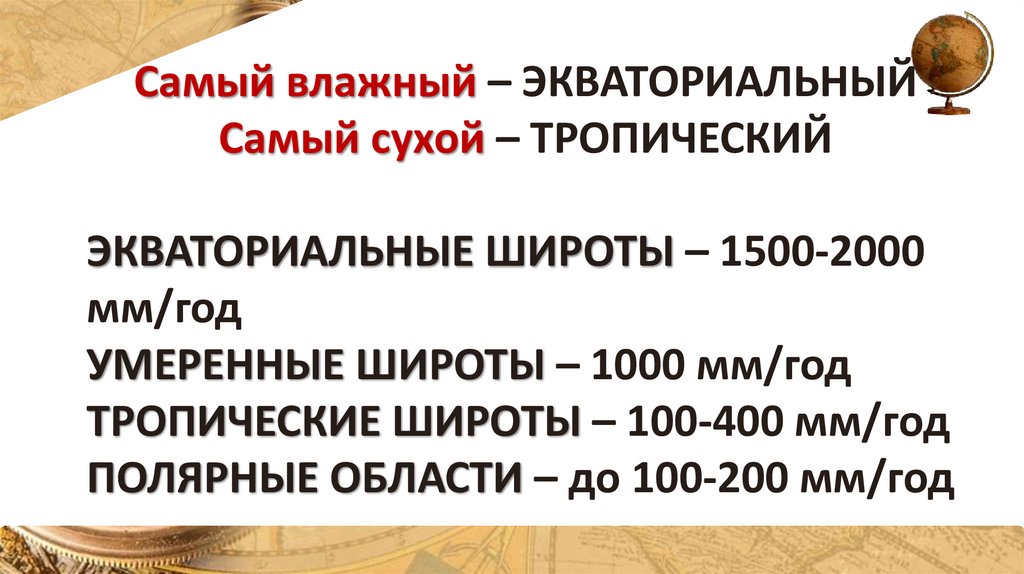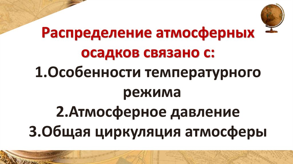 1. Распределение осадков на земле. Пояса атмосферного давления.