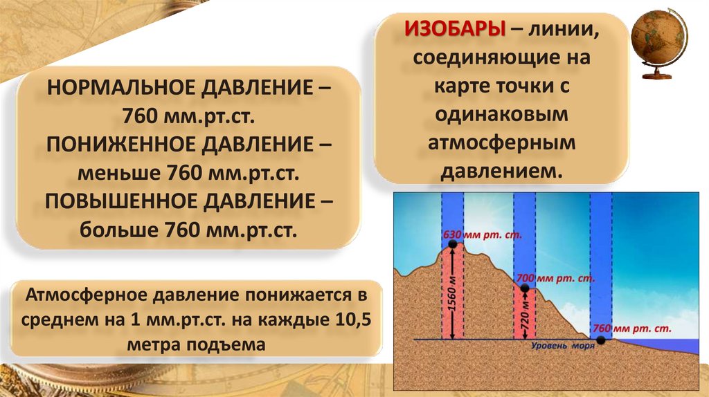 НОРМАЛЬНОЕ ДАВЛЕНИЕ –760 мм.рт.ст.