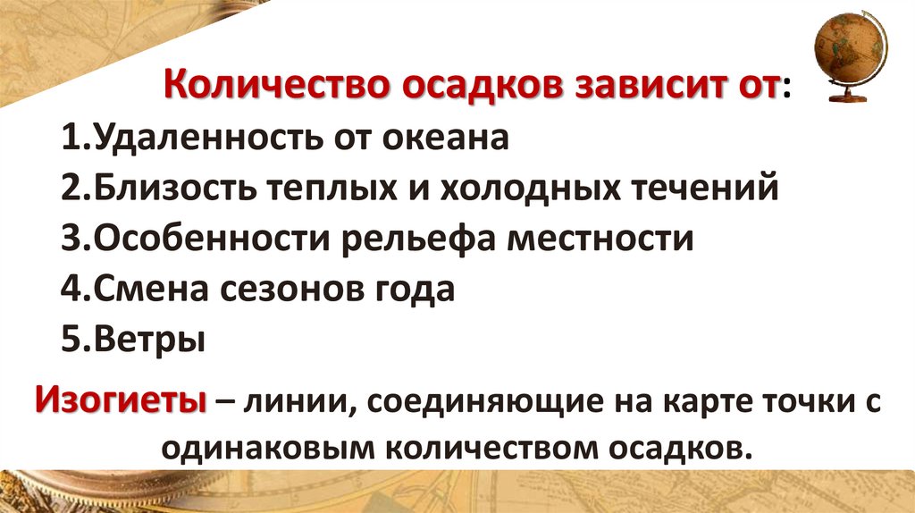 Количество осадков зависит от:1.Удаленность от океана