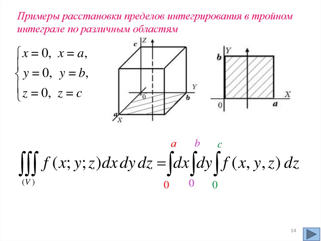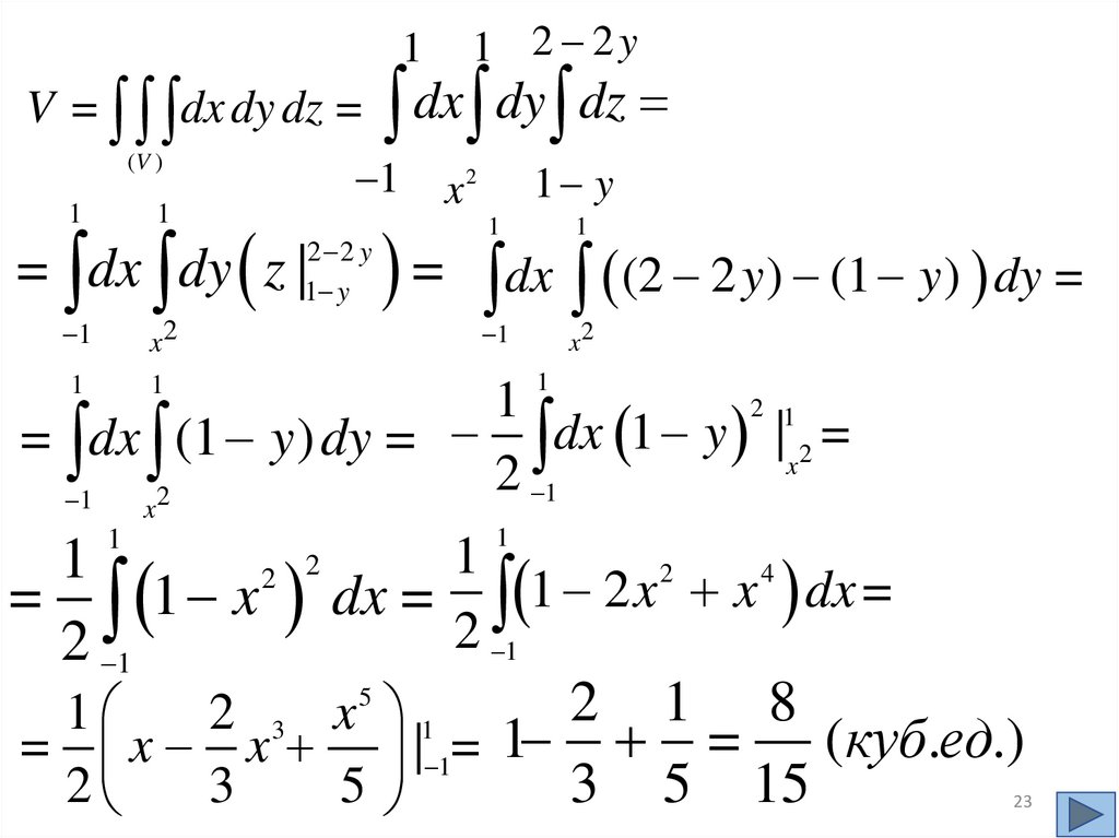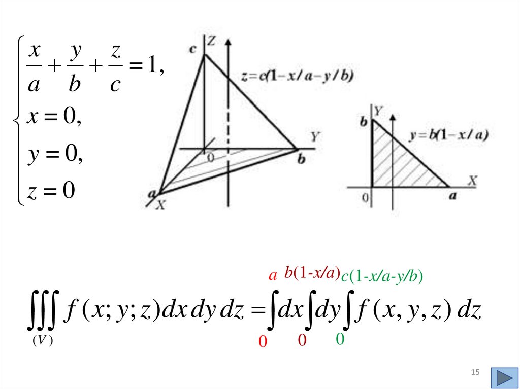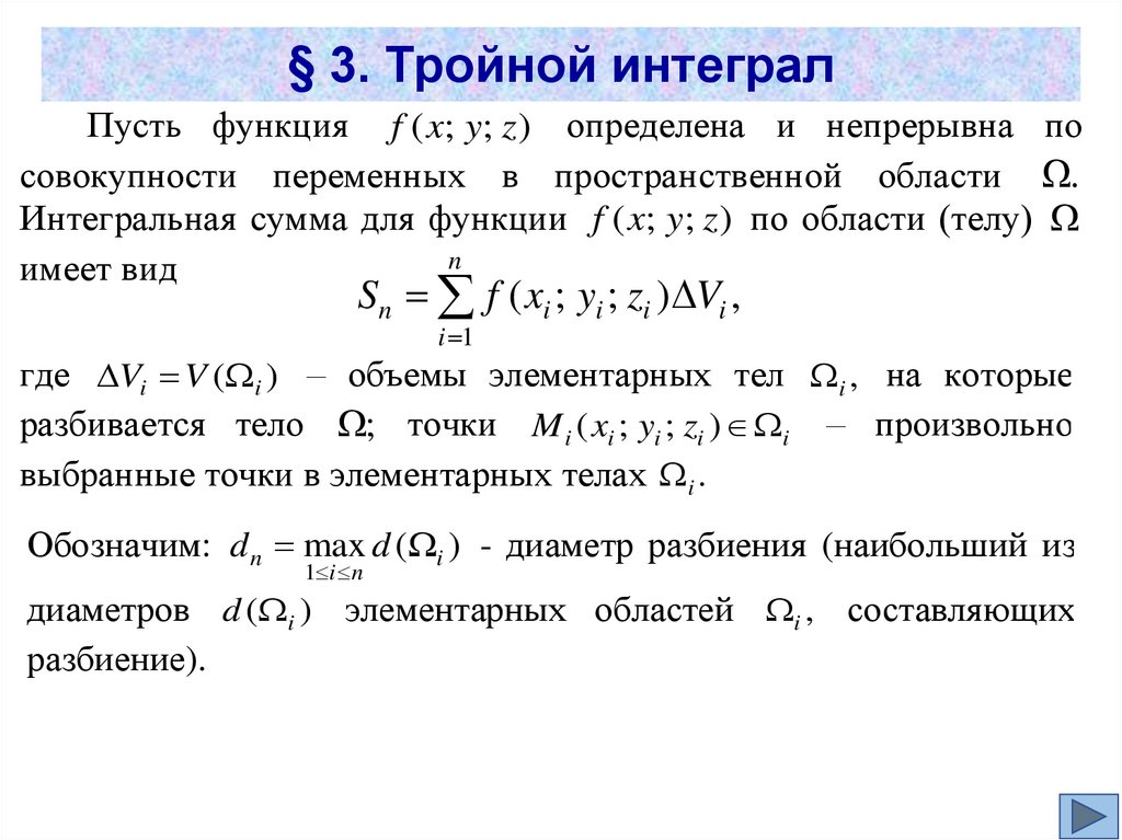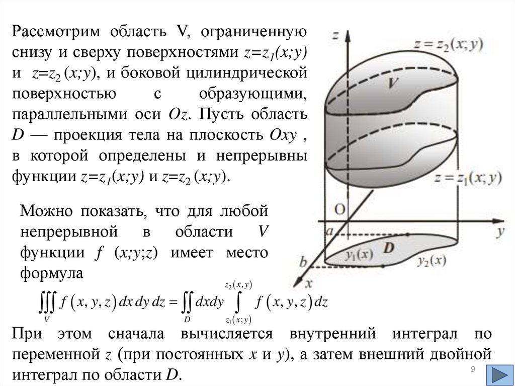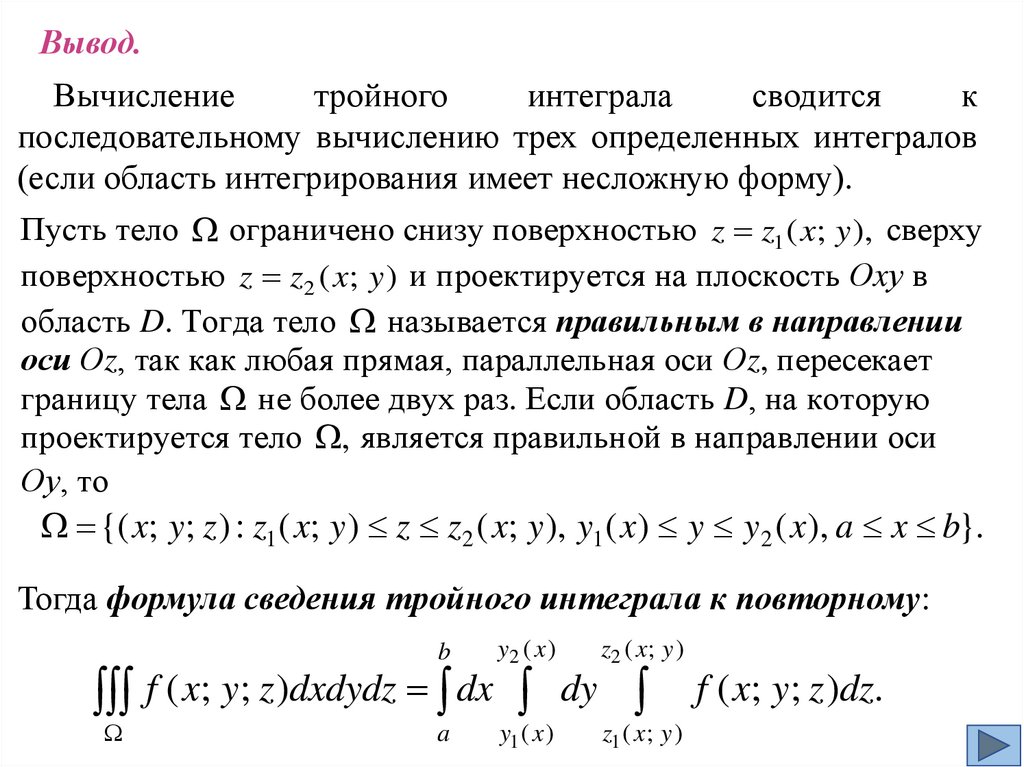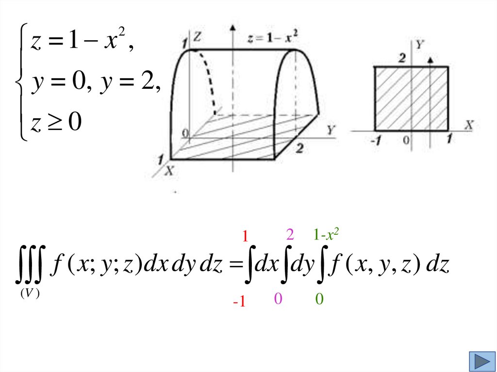Вычисление тройных интегралов.Вычисление тройного интеграла f x, y, z dv так же как и