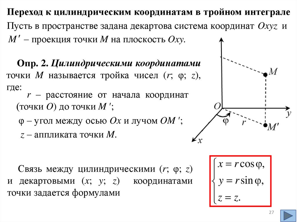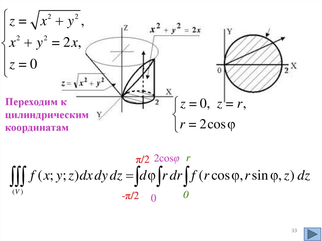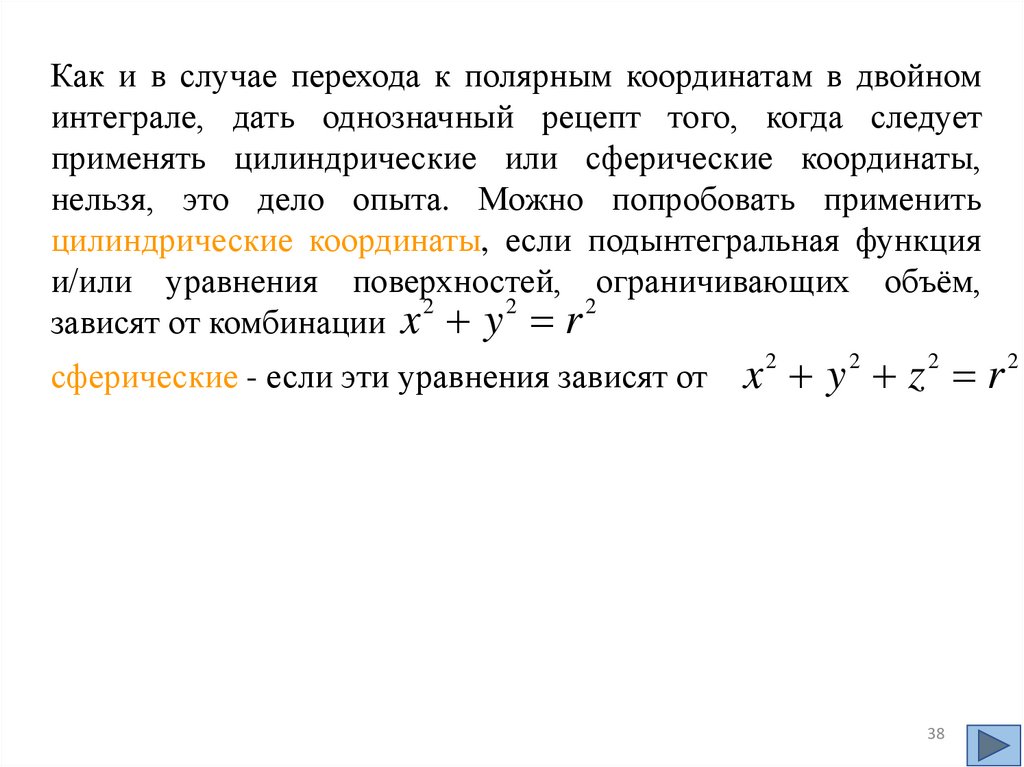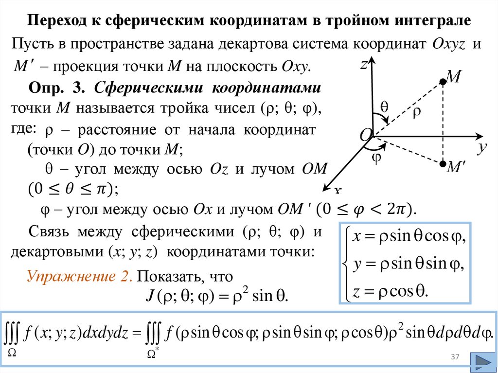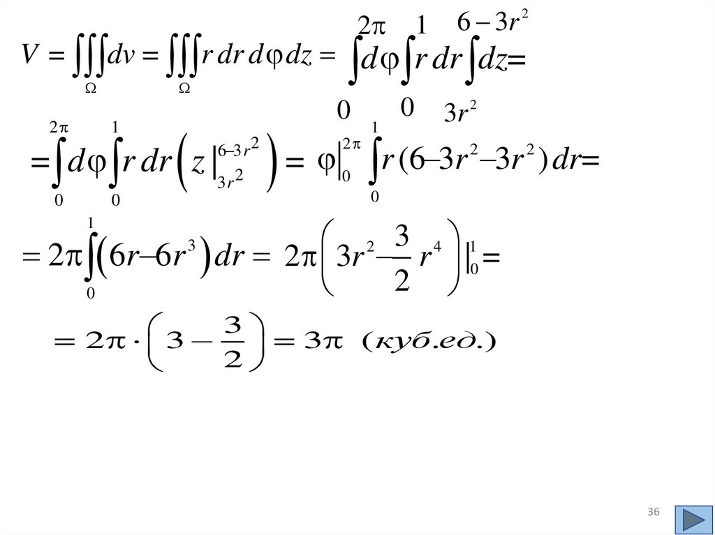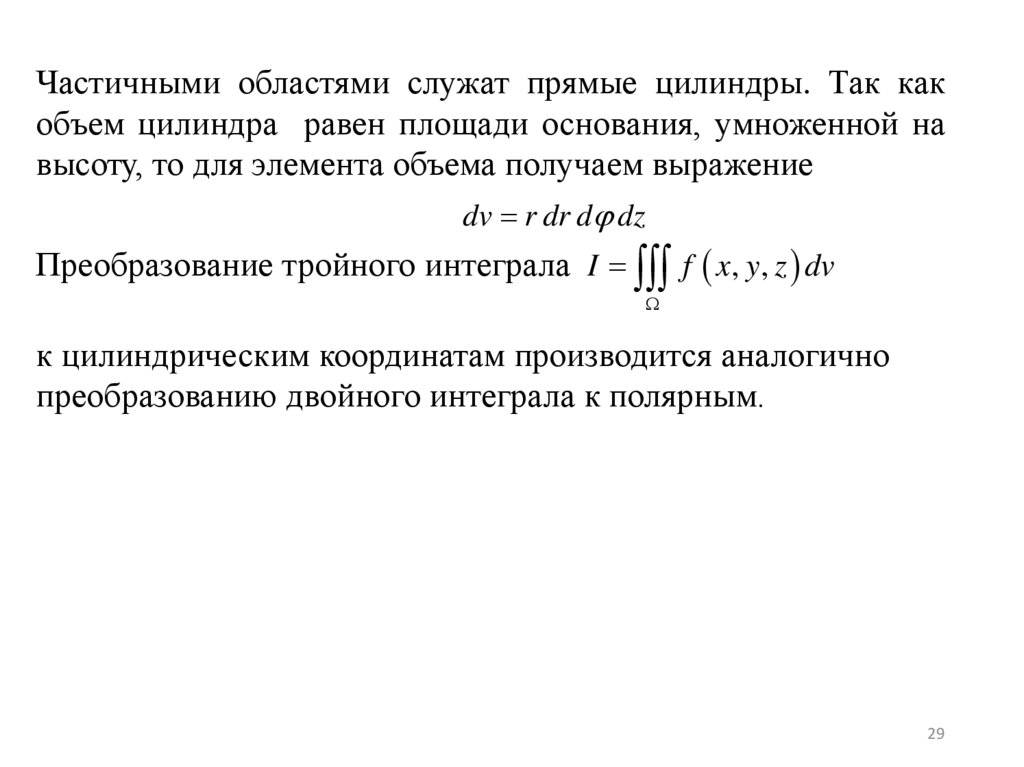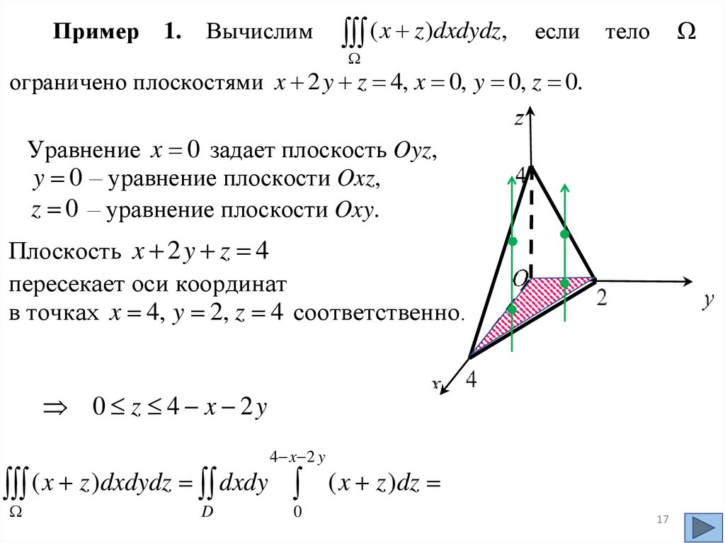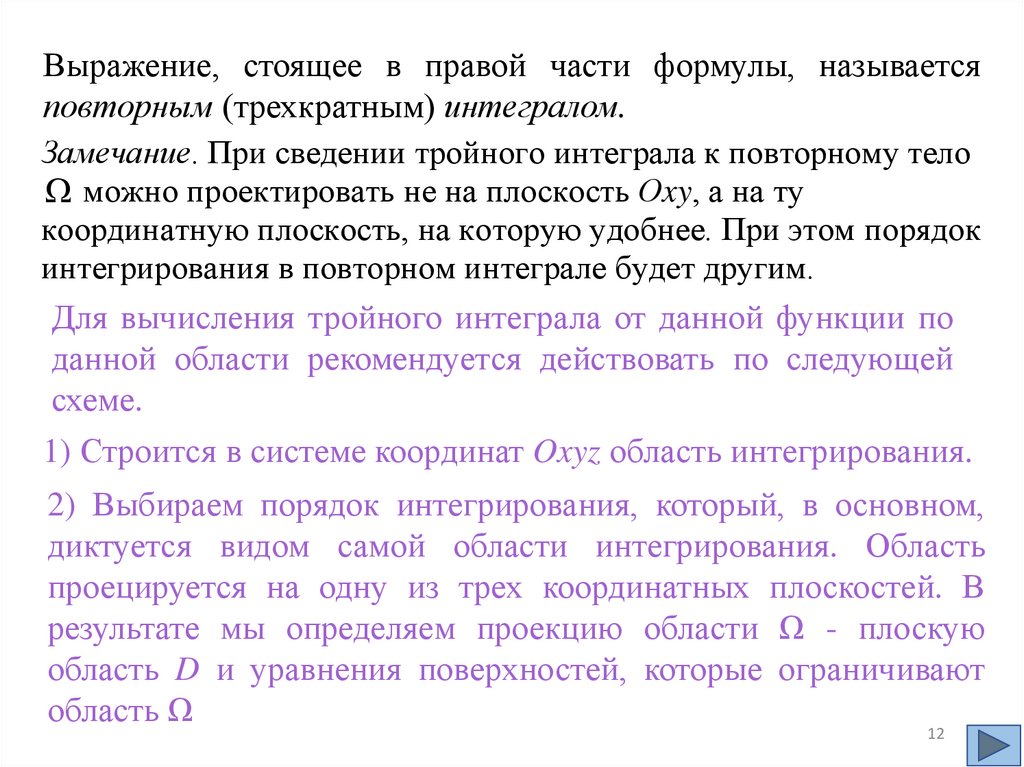 Вычисление тройных интегралов.Вычисление тройного интеграла f x, y, z dv так же как и