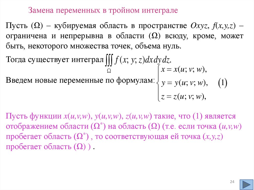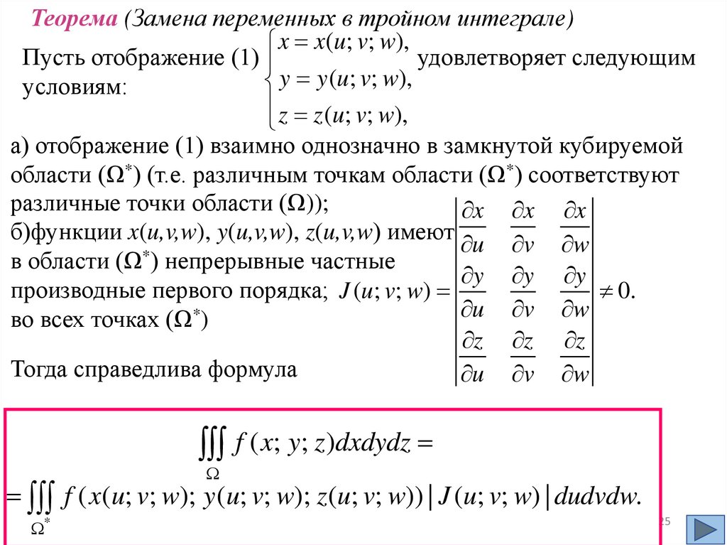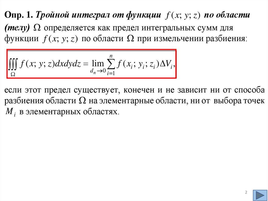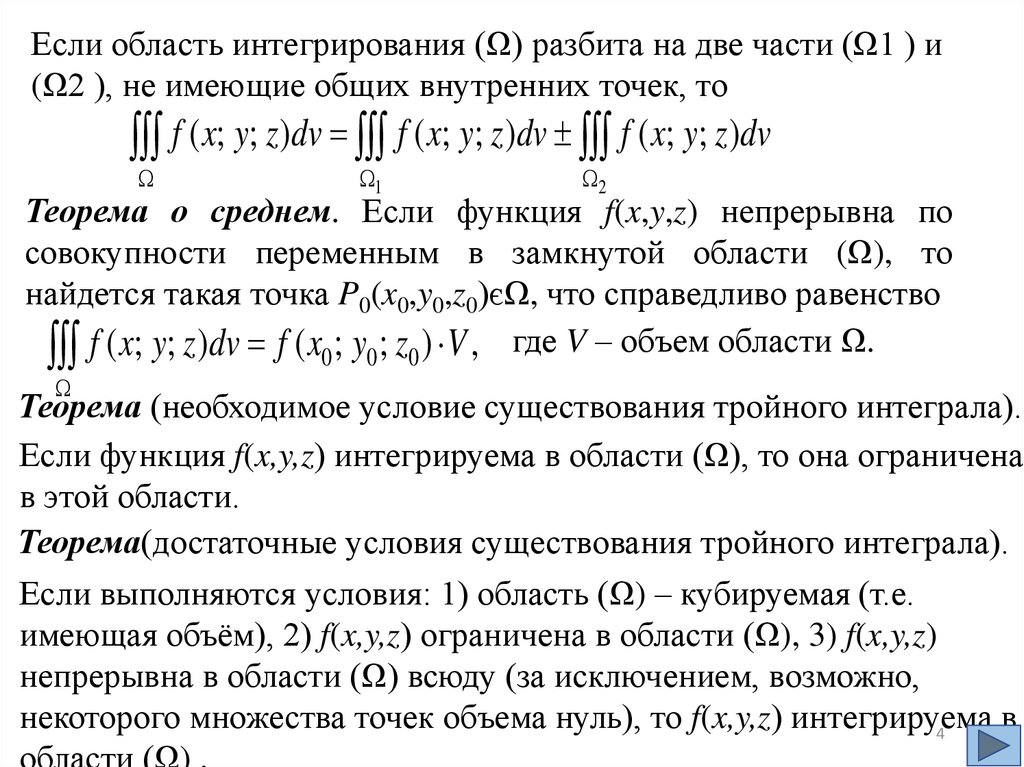 имеющая объём), 2) f(x,y,z) ограничена в области (Ω), 3) f(x,y,z)