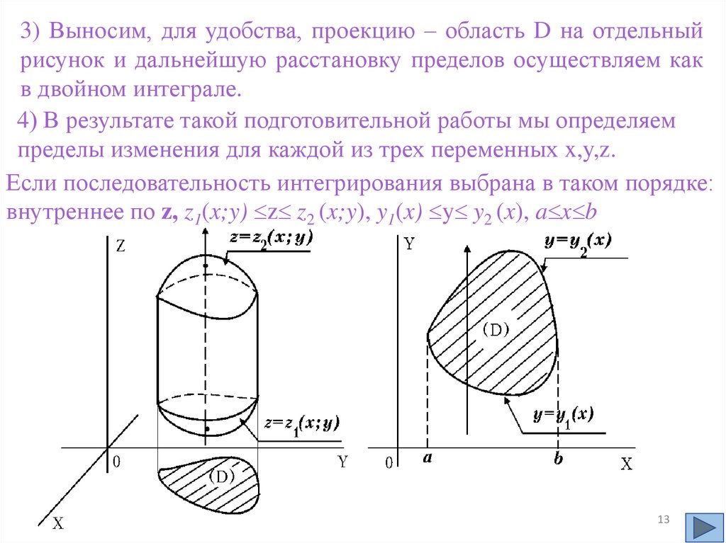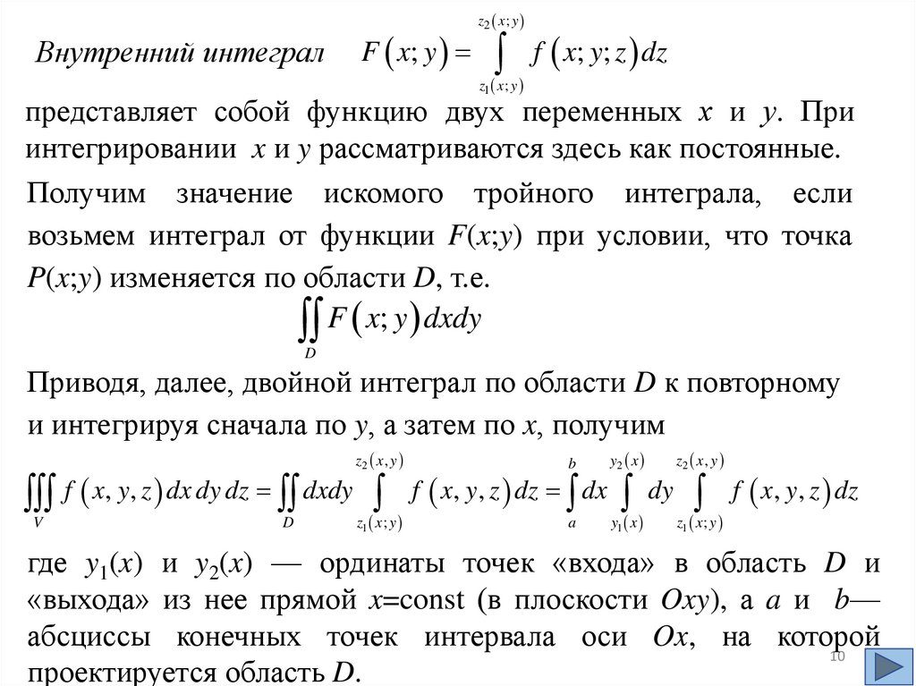 внутреннее по z, z1(x;y) z z2 (x;y), y1(x) y y2 (x), a x b