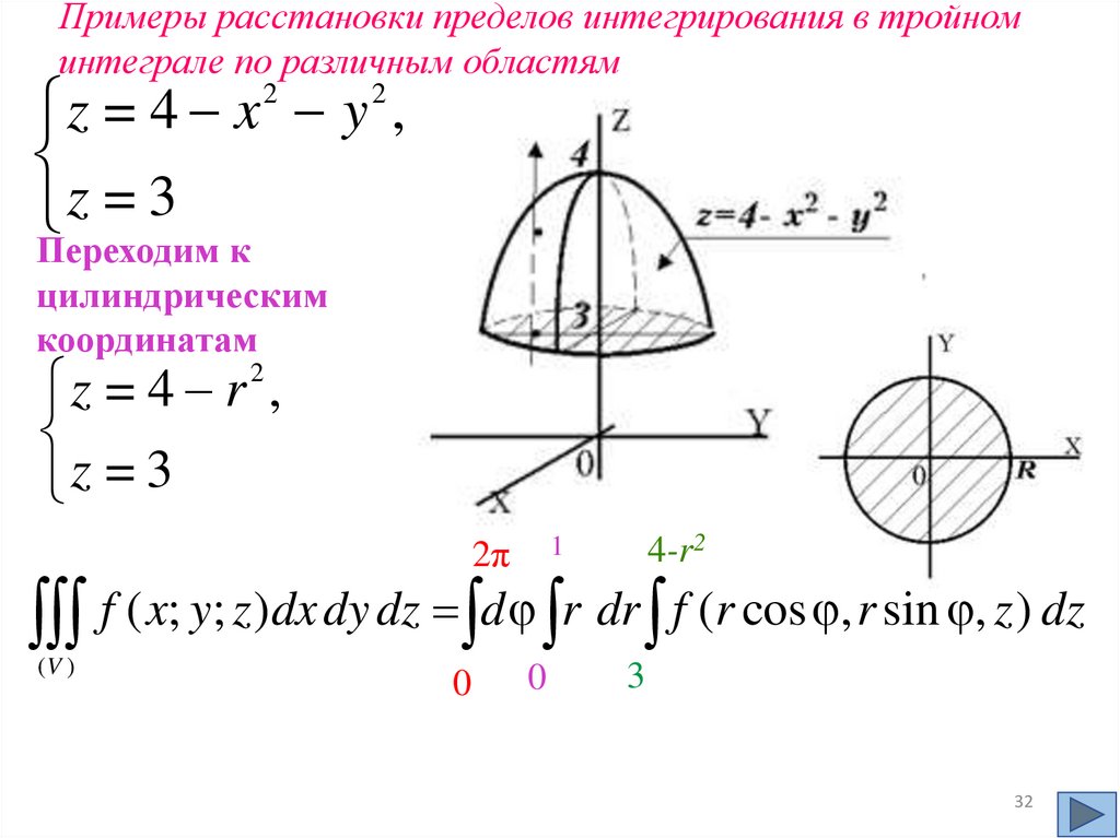 Примеры расстановки пределов интегрирования в тройноминтеграле по различным областям