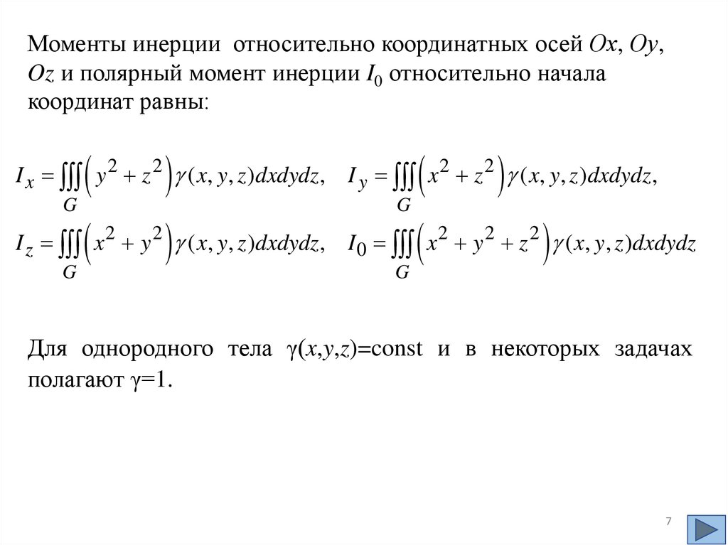 Для однородного тела γ(x,y,z)=const и в некоторых задачах