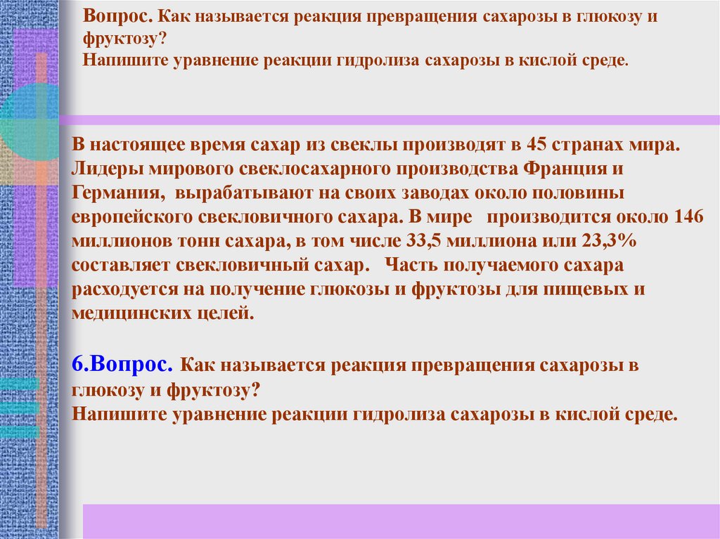 6.Вопрос. Как называется реакция превращения сахарозы в