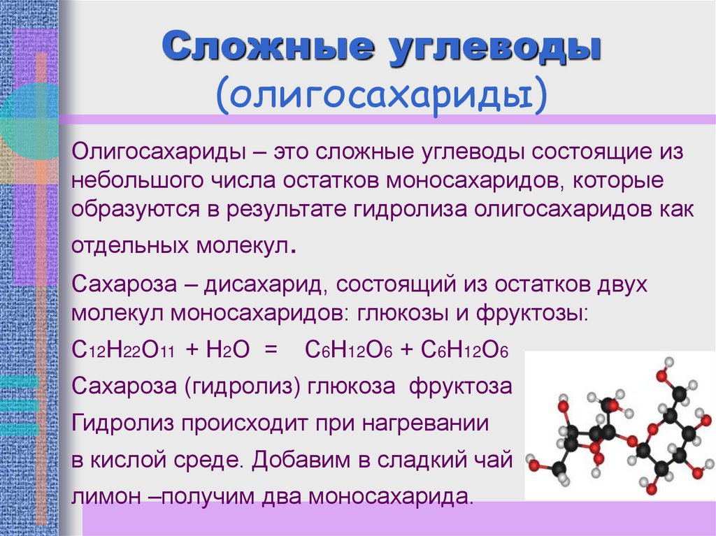 Олигосахариды – это сложные углеводы состоящие изнебольшого числа остатков моносахаридов, которые