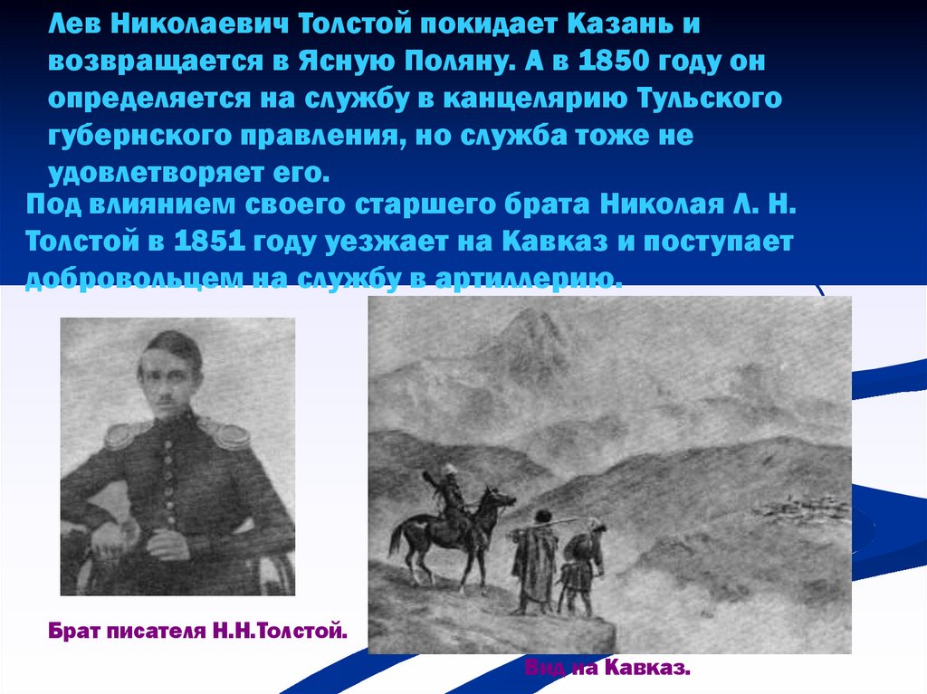 Толстой в 1851 году уезжает на Кавказ и поступает