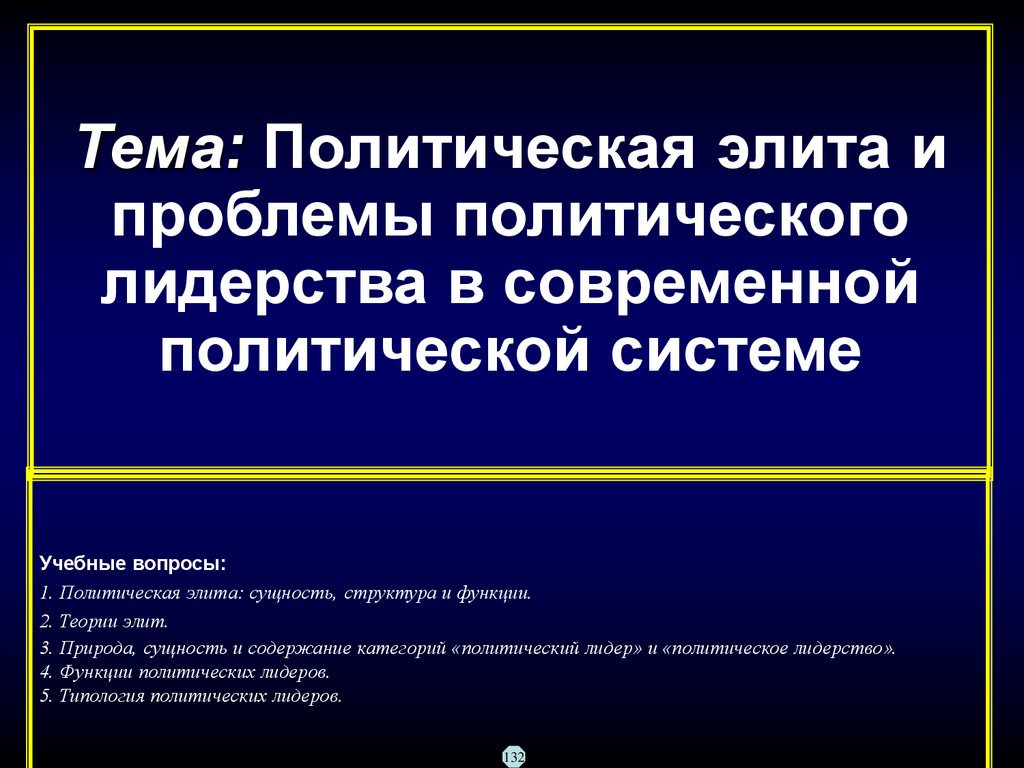 СТРУКТУРА ПОЛИТИЧЕСКОЙ ЭЛИТЫПолитическая элита – это привилегированная группа людей, которая занимает