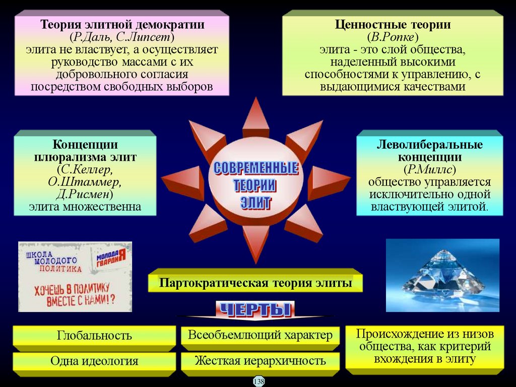 положение в обществе, обладающими престижем, властью, богатством, активными в