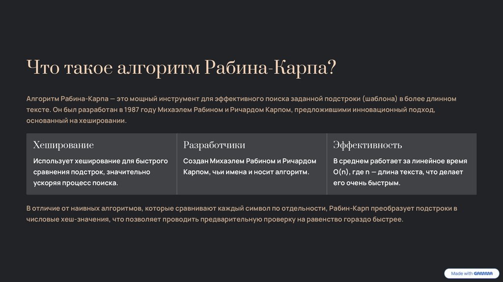 тексте. Он был разработан в 1987 году Михаэлем Рабином и Ричардом Карпом, предложившими инновационный подход,