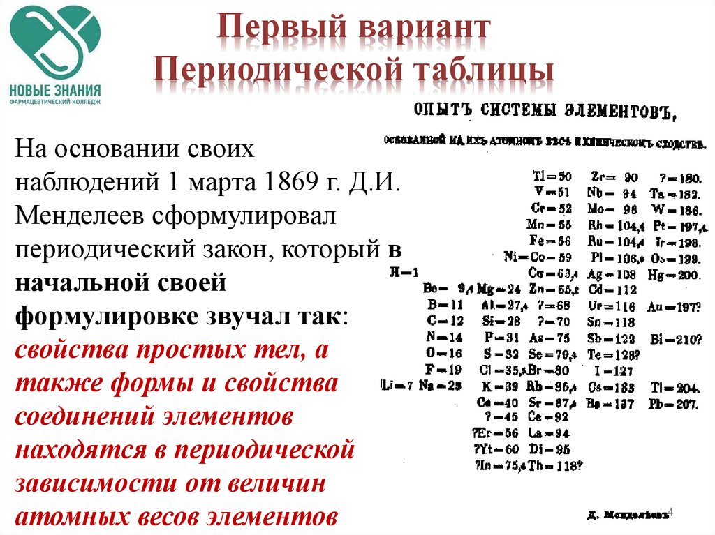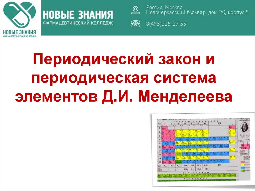 1. Периодический закон и периодическая система элементов Д.И. Менделеева