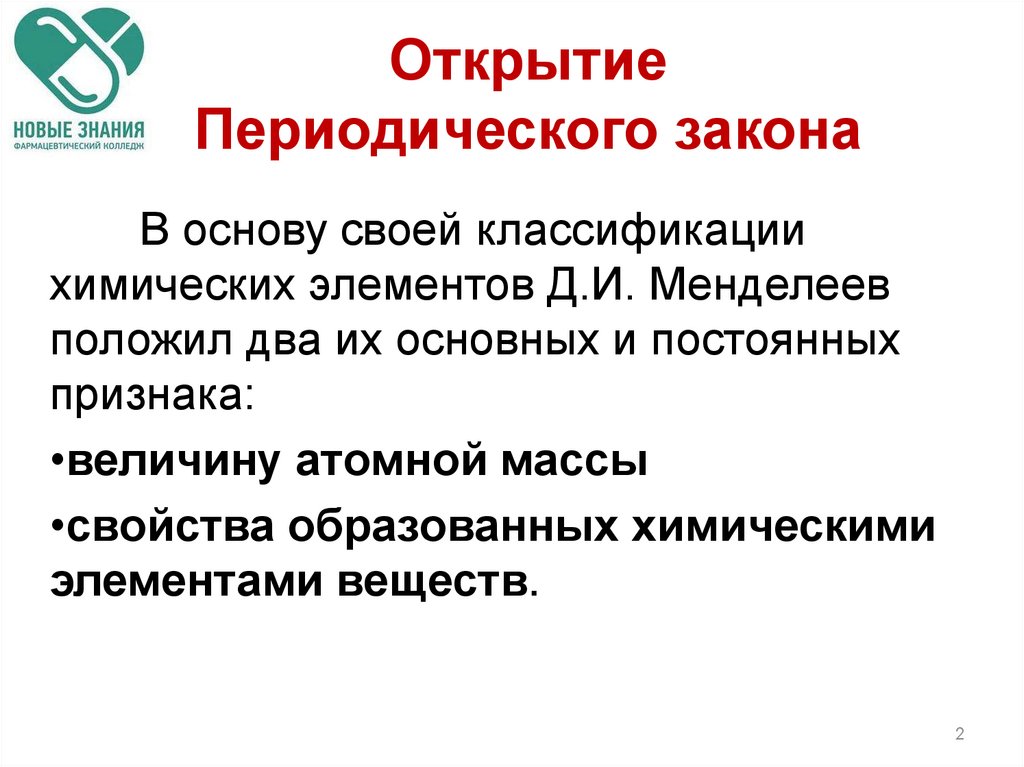 ОткрытиеПериодического закона
